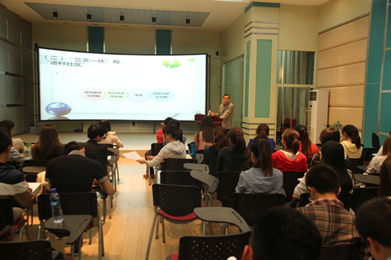 随后,他根据国家和甘肃省2012年大学生相关就业政策,就民生实事扶持高校毕业生就业工程项目和基层服务项目给同学们进行解读。民生实事方面,他重点就项目内容、报考条件、报名资格审查、考试内容及范围、考试时间、待遇及保障措施等详细做了说明;基层服务方面,他重点就大学生村官、“三支一扶”和“进村进社”、大学生志愿服务西部计划、国家农村义务教育阶段学校教师特设岗位等项目的报考对象和条件、报名时间、地点、考试内容做了说明。与beat365官网毕业生相关的旅游人才、特岗教师等项目,贾书记还就考试形式、考试内容做了进一步阐述。