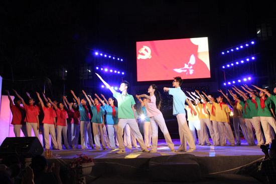 晚会分为“飘扬的旗帜”、“绽放的青春”、“汇聚的梦想”三个篇章。沙画诗朗诵《如歌的岁月》以情景再现的形式回顾了五四运动94年以来中国青年在党的领导下奋勇开拓、勇于创新的民族精神和时代品格;音诗画《以青春的名义宣誓——让生命之花盛开在祖国最需要的地方》表达了我校团员青年有理想、有担当,能够把个人发展与祖国和民族的需要紧密结合在一起的精神信念;《我的青春,我的团》、《中国范儿》等节目一次次将晚会气氛推向高潮。