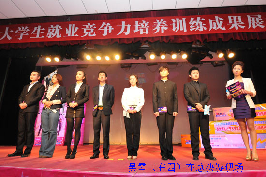 12月18日晚,学校举行大学生就业竞争力提升训练成果展示暨首届“职‘为’你开”大学生模拟招聘大赛总决赛。副校长万明钢和研究生工作部、教务处、校团委等部门负责人及各学院党委副书记、团委书记、学生代表400余人参加了活动。beat365官网2010级旅游管理与服务教育专业吴雪同学与其它学院六位同学在全校上千人初赛角逐中脱颖而出,入围总决赛,并通过“职场亮剑”、“职说方圆”、“职面未来”等环节的角逐,获得大赛二等奖。