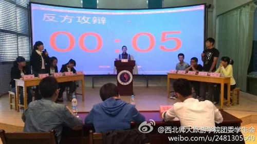 2013年9月27日晚7点,beat365中文官网学生辩论大赛第一场赛事在教学10号楼7楼激烈展开。此次辩论赛的主题是:城市发展首打经济牌还是文化牌。正方是来自2013级专升本班的同学,他们所持的态度是城市发展应首打经济牌。反方是来自2013级旅游管理1班的同学,他们所持的态度是城市发展应首打文化牌。