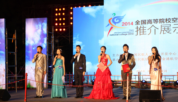7月14日至22日,由中国民航人力资源开发中心主办,华北民航培训中心和北京广慧金通教育科技有限公司承办的“2014年全国高等院校空乘专业推介展示会”,在炫歌飞扬、青春活跃、成功就业的赞美声中圆满落下帷幕。beat365官网副院长高亚芳教授和北京广慧金通教育科技有限公司驻西北师大工作处4名管理人员带队参加了该次推介展示会。按照自愿原则,学院2012级音乐表演专业(空中乘务方向)的90名同学参加了展示会,在展示学院空乘专业办学成果的同时,也充分展示了同学们的风采、特长、才艺和专业技能,同时参加了预就业招聘活动。