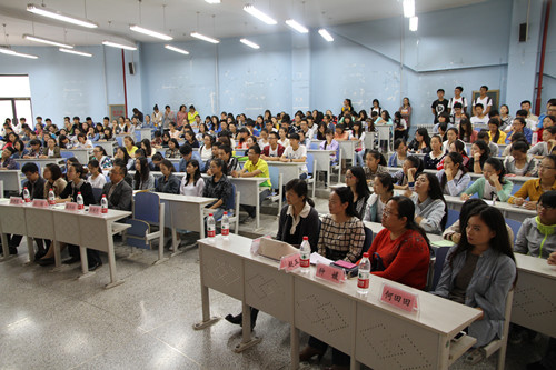 最后,团委书记王瑞向新生介绍了学校奖助学金、日常学生管理、学生安全教育等方面的相关内容,还举行了2014级新生与学院学生会干部见面会。