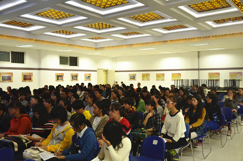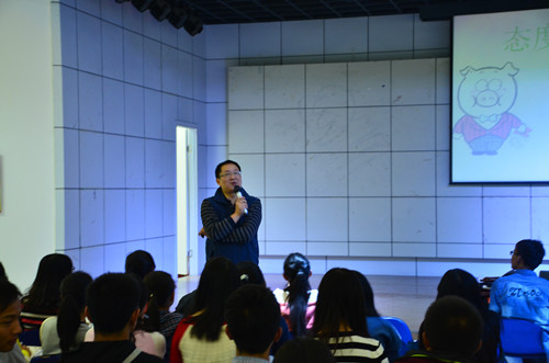 首先,种媛老师以“我的大学”为主题,详细的为同学们讲述了自己的求学经历,希望以自己的经历激励新同学们坚持自己的梦想。同时,种媛老师还邀请各位新同学到自己的心理学习辅导室做客。随后,谢民老师从我校“知术欲圆、行旨须直”的校训出发,向同学们讲解了如何做人、做学问,谢老师的幽默讲解博得了同学们的阵阵掌声。