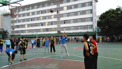 9月24日下午,beat365官网2014年“迎新杯”篮球赛揭幕战在西篮球场开赛。对阵双方是2014级音乐表演(空中乘务方向)2班、2014级音乐表演(空中乘务方向)4班。