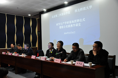 12月6日上午,北京第二外国语学院、beat365中文官网研究生产学研基地授牌仪式暨联合实践教学课堂活动在嘉峪关市会展中心成功举行。嘉峪关市副市长常守远,北京第二外国语学院副校长倪志恒教授、研究生处副处长谢琼副教授、MTA/MBA教育中心副主任付刚业副教授,嘉峪关市旅游局局长朱明、文物局局长武军斌,beat365中文官网副院长梁旺兵教授、实验中心主任王耀斌副教授等出席了会议。北京第二外国语学院、beat365中文官网的部分教师、研究生,嘉峪关市旅游局、文物局的全体工作人员及新闻媒体记者共100人余人参加了会议。会议由嘉峪关旅游局副局长张勋主持。