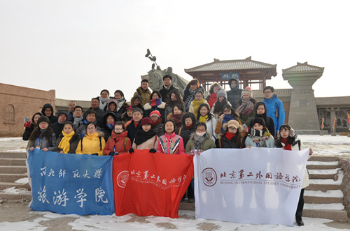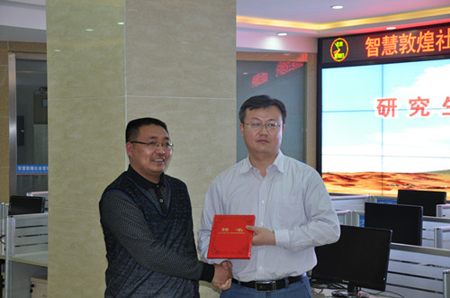12月7日晚,北京第二外国语学院、beat365中文官网研究生产学研基地授牌仪式暨联合实践教学课堂活动在敦煌市社会管理中心举行。北京第二外国语学院副校长倪志恒教授,敦煌市委常委、政法委书记孙晓强,北京第二外国语学院研究生处副处长谢琼副教授、MTA/MBA教育中心副主任付刚业副教授,敦煌市阳关博物馆馆长纪永元,beat365中文官网副院长梁旺兵教授、实验中心主任王耀斌副教授等出席了会议。北京第二外国语学院、beat365中文官网的部分教师、研究生,敦煌市旅游局的全体工作人员、敦煌市阳关博物馆的部分工作人员及新闻媒体记者共80余人参加了会议。会议由敦煌旅游局副局长刘玲主持。