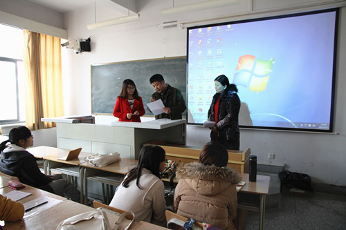 主要检查了上课教师的出勤情况,教学文件(教材、教案、教学进度表等)是否齐全,课程设计是否合理清晰,课堂组织是否周密,是否对学生进行了点名等纪律要求,多媒体课件是否完整、新颖等内容,并当场予以指出了存在的问题。在检查过程中,把院长对上课学生进行勉励,让他们热爱自己所学专业,认真上课,积极思考,平时多阅读,提高自身水平。