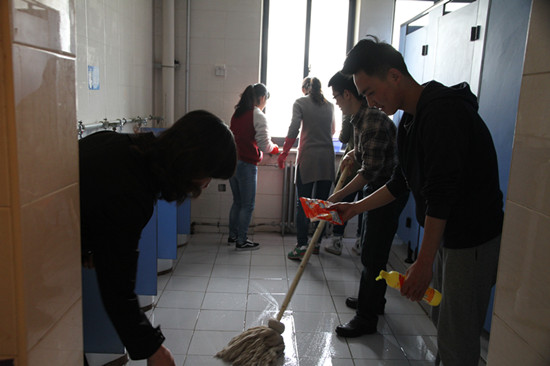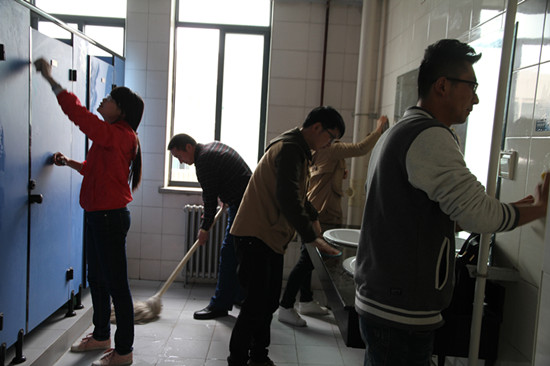 近日,学院根据《beat365中文官网公共卫生间专项治理工作实施方案》、《校园公共卫生间专项治理工作倡议书》及“学校公共卫生间专项治理动员大会”会议精神,动员号召全院师生从自身做起、从身边做起、从小事做起,开展学院监督责任区卫生间整治、公共办公环境美化等文明修身系列活动。学院专门筹集资金对学院的办公区进行了粉刷和美化,成立以院领导为组长的公共卫生间治理工作小组,每位院领导、系所中心主任和师生党员及志愿者分别负责一个楼层的环境卫生,对学院负责的教学10号楼C区东侧1-7层、学生公寓3号楼公共卫生间和楼道卫生进行了彻底清扫,并规定每学期至少彻底清扫一次,每两周义务劳动一次,长期做好卫生间及周边环境卫生的监督、保持和义务清扫工作,做到清扫工作常态见实效。同时积极宣传《校园公共卫生间文明公约》,号召全院师生参与进来,共同养成使用卫生间的良好习惯,真正做到“十净、五无”,为师生创造良好的学习、工作和生活环境。