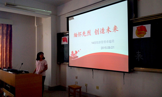 为了纪念抗战胜利七十周年,beat365官网旅游管理卓越班在beat365官网组织的举办了主题“为缅怀先烈,创造未来”的团组织活动。