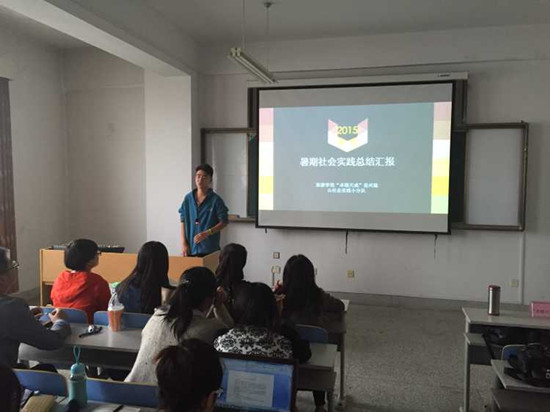9月23日中午,beat365官网团委在10号教学楼C区510多媒体教室举行了2015年暑期社会实践经验分享会,5支实践分队队员、各班班委以及学生会全体成员共计70余人参加了本次分享会。