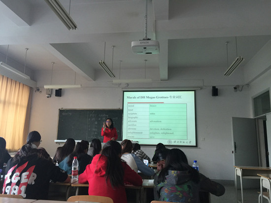 比赛过程中,每位参赛老师都通过充实的内容、精彩的语言、富有感染力的教态及生动有趣的讲解,把各自的教学特色展示得淋漓尽致。王力老师《中国文化概论》——《青铜时代》一讲,围绕青铜时代的主题展开讲解,深入分析了人类进入文明社会的五个主要标志及中国文明起源的多源性特征,并以图文并茂的方式展示了夏商周三代的物质文明及其特点,使同学们对中国青铜时代的物质文明和精神文明有了更直观的理解。张亚芳老师《酒店管理》——《酒店服务品质管理》课程,从有关酒店服务及酒店服务品质的概念基本认知入手导入,接着对新的课程内容“酒店高品质服务的基本路径”进行了详细的讲解,对服务的基本准则,如何充分理解顾客消费心理,如何有效满足顾客的需求三个方面的内容进行了重点讲述。王艳林老师《甘肃景点英语》-《敦煌莫高窟-壁画》,从对敦煌概况复述练习开始,对学过的佛教专题词汇进行复习和口头造句练习。并讲解了敦煌壁画的主要题材和主要类别,通过“萨埵那王子以身饲虎图” 和“九色鹿王”的壁画故事,概述敦煌壁画体现的佛教教义和思想。以简明图表的形式,概括出敦煌壁画内容的信息点。