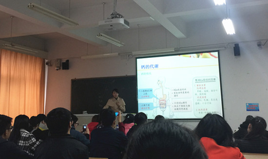 在《食品营养与卫生》讲授过程中,陈曦老师从营养疾病“骨质疏松”的危害导入,讲授了矿物质元素-钙对身体的重要作用,中国居民钙元素参考摄入量,以及通过讲解钙元素吸收的影响因素分析介绍了富含钙元素的食物和推荐菜品。