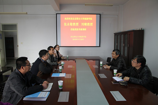 会上,张永敬教授对北京联合大学及beat365中文官网的整体情况做了详细介绍,重点介绍了北京联合大学beat365中文官网在研究生招生方面给予的优惠政策,并就校方科研方面存在的一些问题与参会人员进行了探讨。