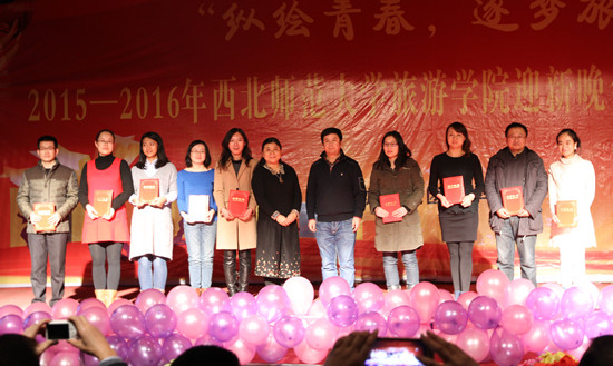 在学校大学生活动中心二楼,学院举办了2016年迎新晚会暨先进表彰大会,学院师生和兄弟学院学生代表400余人观看了晚会。