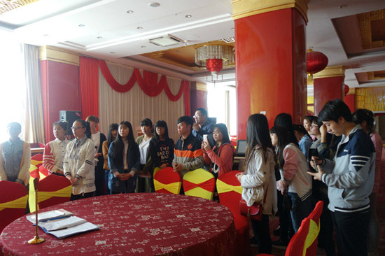 4月15日,按照事先分组,四位“助教”对中餐餐桌台布抖铺、餐碟定位和摆台以及中式铺床等技能予以辅导,敦煌学院的同学们学习劲头十足,不规范的动作在助教的指导下慢慢变得规范起来,兰州同学还结合自己在皇冠假日酒店实习心得介绍了各自对酒店工作的心得,与敦煌同学分享了经验与体会。