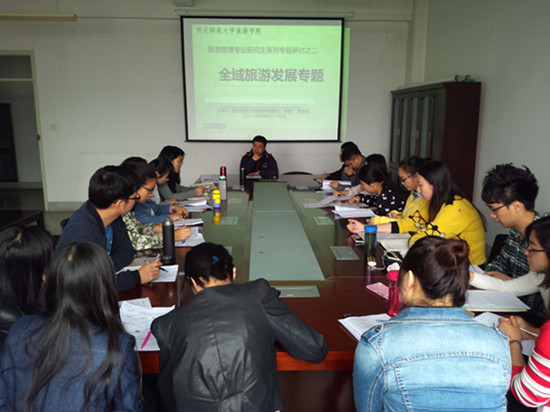 4月25日下午,beat365官网旅游管理专业硕士研究生系列专题研讨活动第二场在10C502室顺利举行,本次专题研讨活动主题为“全域旅游发展”,研讨活动由把多勋教授主持。beat365官网研一、研二的全体研究生参加了研讨活动。