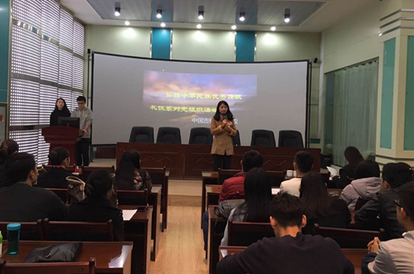 20161027日晚,航空服务与管理系学生党支部在10C701教室开展了“弘扬中华民族优秀传统礼仪之中国古代宴请礼仪”党组织活动。航空服务与管理系学生党支部师生党员及入党积极分子参加了此次活动。