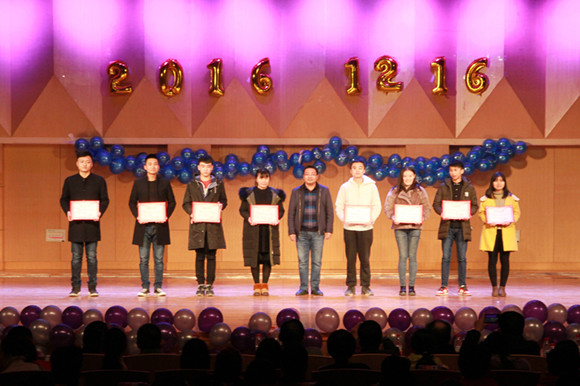 党委书记贾志斌为学院2015-2016学年学习优秀奖获得者李晓伊等8名获奖学生代表颁发了荣誉证书,副院长梁旺斌为为beat365中文官网2015-2016学年模范学生干部奖、道德模范奖、实践创新奖、学术科研奖获得者杨紫晨、陈璐等8名同学颁发了荣誉证书,并与获奖同学合影留念。