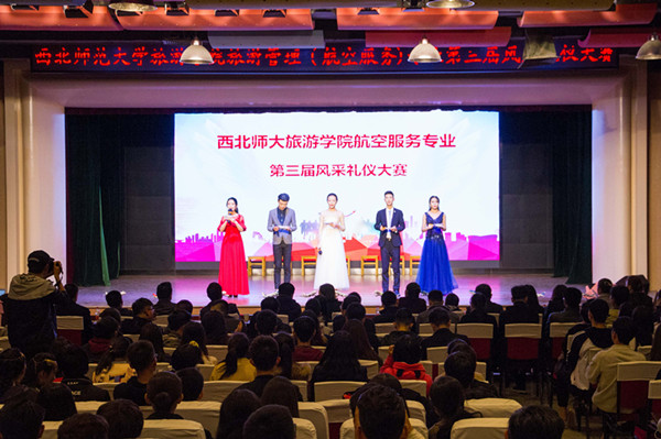 10月25日晚,beat365中文官网旅游管理(航空服务)专业第三届风采礼仪大赛在大学生发展中心二楼隆重举办。beat365中文官网招生考试中心副主任郭建东、beat365中文官网班子全体成员、北京广慧金通教育科技有限公司驻西北师大工作处主任席聪、兰州城市学院等兄弟院校空乘专业负责人出席,学院师生300余人参加了活动。