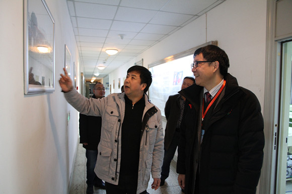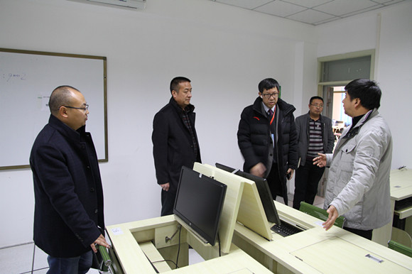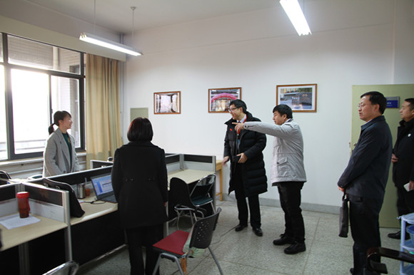 12月12日下午16:20,本科教学工作审核评估专家组成员、湖南师范大学教务处处长夏赞才教授来学院考察办学环境。院长把多勋教授为夏处长详细介绍了学院的本科教学工作审核评估展室、各系所中心办公室、实验室、综合办公室、华苑创咖以及学院的文化环境建设。学院领导班子全体陪同。