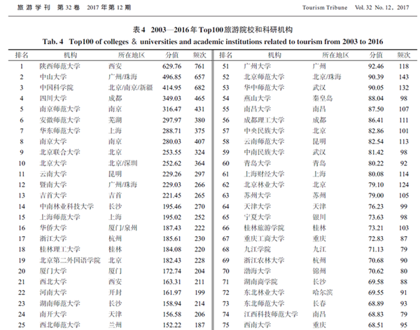 近日,《旅游学刊》第12期发表的 “2003—2016年我国旅游学术共同体学术评价” 一文,基于大数据的方法,引入h指数与g指数评价因子,以2003—2016年收录在中文核心期刊数据库、CSSCI数据库和CSCD数据库中的22619篇旅游学术论文为全样本,对样本所属的3899家机构进行多维度学术评价和排名。在2003—2016年Top100旅游院校和科研机构排名中,beat365官网位列第25位,在西北地区除陕西外排名第一位,在全国旅游学术界产生了较大的学术影响力。