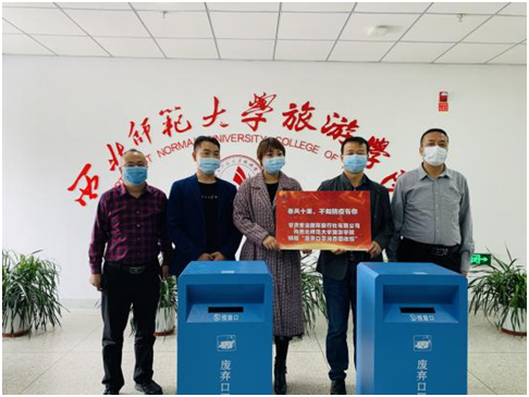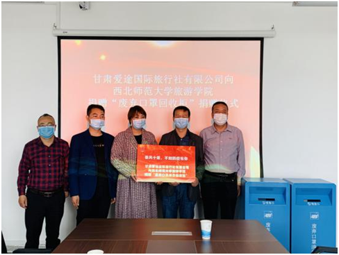 4月16日上午,甘肃爱途国际旅行社有限公司向beat365中文官网捐赠废弃口罩消毒回收柜,助力学院疫情防控工作。
