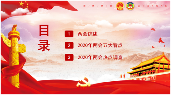 会上,党支部书记带领大家学习了两会的基本知识,包括两会综述和两会组成。梅天鹏同志聚焦2020年两会,围绕“疫情防控常态化下谋发展”、“‘六稳’、‘六保’背景下经济发展目标”、“短期、长期政策组合释放内需潜力”、“改革举措促创新与升级”、“‘十四五’规划的方向”五大看点分别阐述两会精神。最后梅天鹏同志以“2020年两会热点调查”为题进一步阐述两会精神。