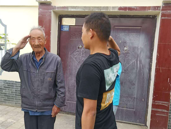7月23日上午,学院党委副书记谢致远,研究生宋谢红、本科生陆文婧及外国语学院志愿者芦文婷一行4人携带慰问品来到参加过抗美援朝战争的革命老兵曹生瑞家中进行慰问,亲切地与他拉家常,详细了解老人的身体状况和生活情况。92岁高龄的老兵曹生瑞1951年参加中国人民解放军,参加过抗美援朝战争;现如今老人身体已不如前,但对参加战斗的经历记忆犹新,如数家珍地为来访的人员讲述战斗时的艰难与激烈。据曹生瑞老人讲述,他在抗美援朝的三十一团担任重机枪射手,在射击时他们班有8个人给他提供弹药,和他一起参加过抗美援朝的嘉峪关人有6个,分别是同村的杨往春和王多福,以及安远沟村的闫长珍,于顺华和裴正甲,现在存活的只剩他一个人了。