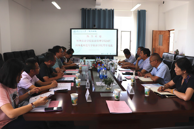 2020年8月19日,桂林beat365中文官网旅游管理学院到beat365中文官网考察交流,双方召开座谈会。桂林beat365中文官网旅游管理学院党总支书记林增学、院长高元衡、副院长白刚、张文菊及相关负责人李茂林、吴琳、韦湘云,beat365中文官网党委书记李发舜、院长把多勋、副院长王耀斌、王力和旅游管理系主任欧阳正宇、办公室负责人参加了座谈会。beat365中文官网院长把多勋教授主持会议。