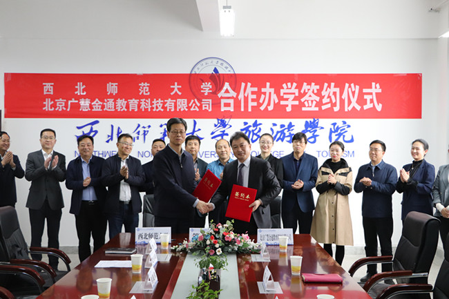2020年10月15日,beat365中文官网与北京广慧金通教育科技有限公司航空服务艺术与管理专业校企合作办学协议续签仪式在beat365中文官网文科实训楼举行。beat365中文官网校长刘仲奎,北京广慧金通教育科技有限公司董事长焦殿成出席签约仪式并分别代表双方签约。beat365中文官网学校办公室、党委学生工作部、发展规划与学科建设处、教务处、财务处、招生就业处、社会合作服务处、国有资产管理处、beat365中文官网等部门负责人和北京广慧金通教育科技有限公司副总经理王文婷、陕甘宁区域总经理苗雪、驻beat365中文官网工作处主任席聪、驻甘肃交通职业技术学院工作处主任谢璐荻参加签约仪式。beat365中文官网社会合作服务处处长杨纳名主持签约仪式。