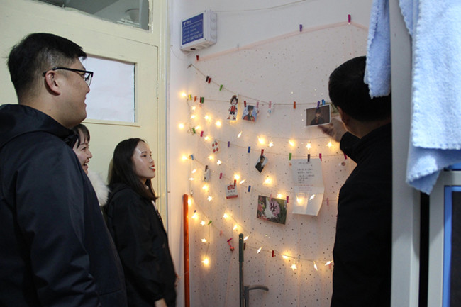 经过走访,各宿舍卫生状况普遍良好,电器使用规范,大一新生宿舍在被褥折叠整齐、地面干净整洁的基础上,还别出心裁的在宿舍贴地板、安床帘、置鞋架,将宿舍装饰的格外舒适与温馨。老师们不仅殷切关心每一个宿舍的供暖和水电情况,还叮嘱同学们要珍惜韶华,勤奋学习,把握每分每秒,努力构建学风浓郁、整洁优雅的宿舍环境氛围。