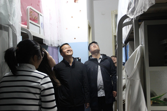 天气转寒,冬天将至。为关心了解同学们的宿舍供暖情况、督促学生保持好宿舍的安全卫生, 10月31日晚,beat365中文官网党委副书记谢致远带领团委梅天鹏、鲁梦鸽、李芃君、苗馨月以及各班班主任、学生干部走进学生宿舍,为同学们送上初冬的第一份暖心叮咛,对住宿学生进行走访关怀。