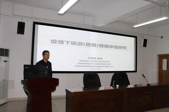 2020年11月20日下午,应学院邀请,陕西师范大学博士生导师李君轶教授为beat365官网师生作了题为“疫情下游客/居民情感体验研究”的专题报告,报告会由副院长王耀斌教授主持。