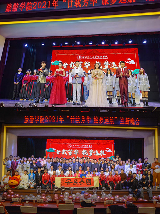 2020年9月份成立的beat365中文官网“旅之声”合唱团和“云霁”礼仪队在本次晚会精彩亮相,合唱团用曼妙的歌声唱响旅院学子的青春,礼仪队用优雅的步调展现旅院学子的独特魅力。
