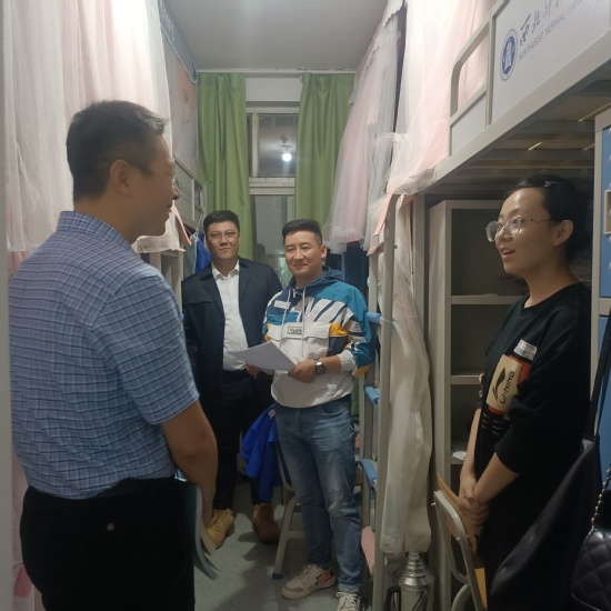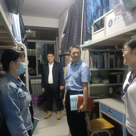2021年9月6日晚,beat365中文官网18—20级全体学生已陆续安全返校,为进一步做好新学期开学老生安全返校工作,beat365中文官网党委副书记戴小武带领学院专职辅导员与班主任老师深入在校学生宿舍进行走访、谈话,了解当前返校学生的学习、生活和心理状况。