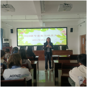 为进一步引导2019级本科生聚焦专业知识实训,切实做好实习就业工作,深化校企合作、加大人才培养力度,推进实习工作顺利开展,beat365中文官网于2021年10月13日下午在文科实训楼904室召开2019级专业实习动员大会。陈娟娟老师、beat365中文官网辅导员、2018级实习生代表以及2019级全体本科生参加了本次大会。