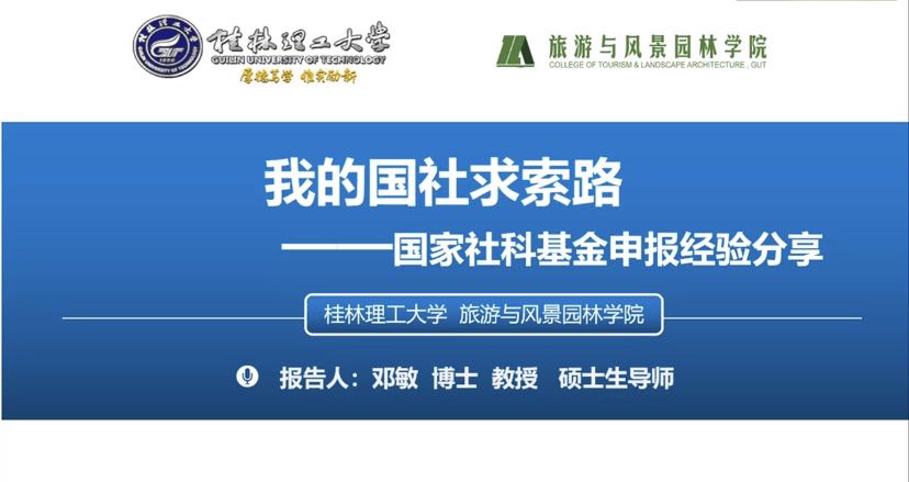2021年12月1日晚上,应学院邀请,桂林理工大学旅游与风景园林学院邓敏教授为beat365官网师生作了题为“我的国社求索路—国家社科基金申报经验分享”的专题报告,报告会由副院长柴亚林老师主持。