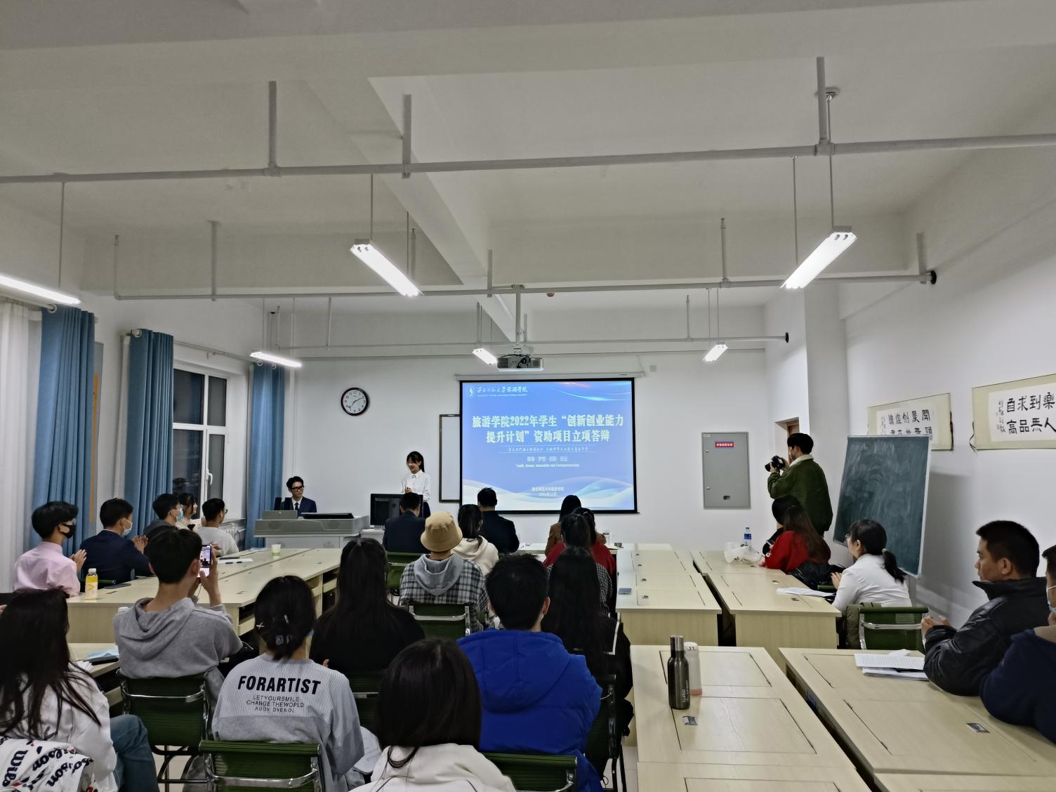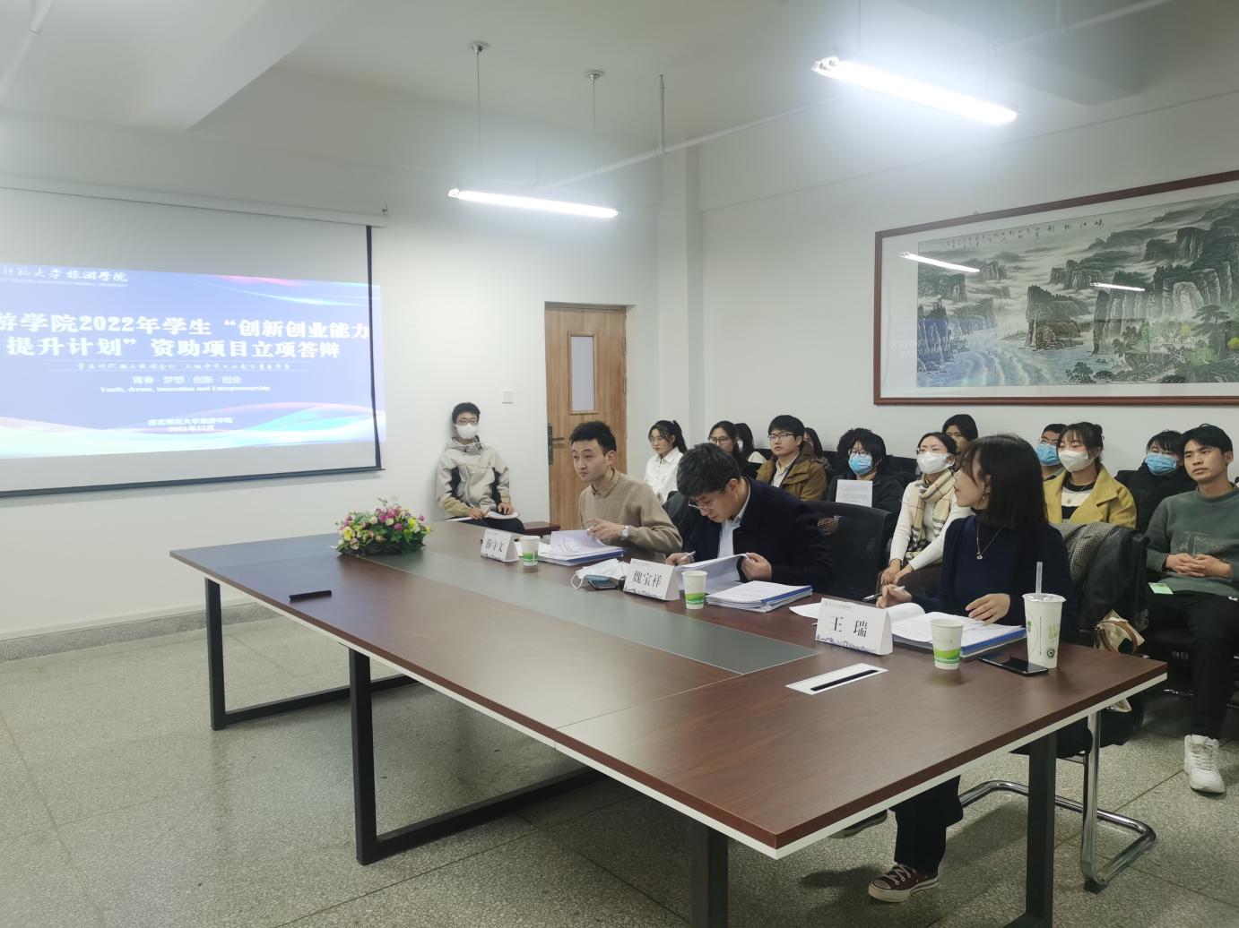 12月9日晚,beat365中文官网在文科实训楼举办2022年度学生创新创业能力提升计划资助项目立项答辩。院长梁旺兵教授,魏宝祥、安智海、武克军副教授,党委副书记戴小武,科学研究院教师王瑞,青年教师黄珊、包军军、周宏、王伟军博士,团委书记梅天鹏,2020届毕业生、绿维文旅集团兰州分公司文旅规划部负责人薛守文应邀担任答辩评委。立项答辩会分四个会场同时进行。