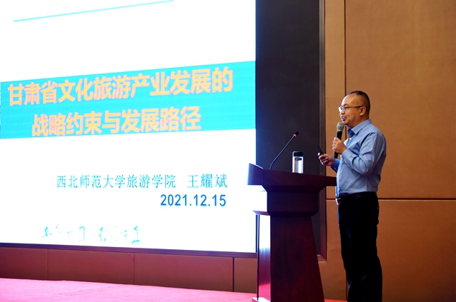受邀讲师团重要成员之一,beat365中文官网研究生院副院长王耀斌教授以“甘肃省文化旅游发展的战略约束和发展路径”为题,从甘肃省文化旅游产业发展的资源特征、约束条件、具体问题、路径选择等四个层次,全面解读了甘肃省文化旅游发展的资源优势,肯定了全省文化旅游快速发展的喜人态势,结合其他省份文化旅游发展的典型经验,从宏观和微观两个层面探讨了甘肃省文化旅游产业发展的路径选择,为推动文旅事业高质量发展寻诊把脉、建言献策。