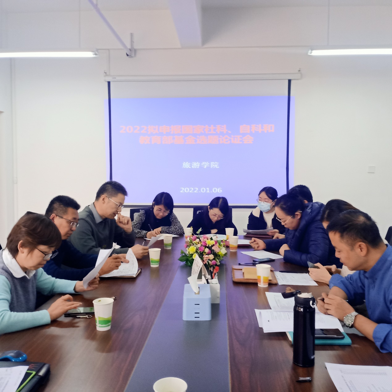 1月6日上午9点,在1005会议室学院领导组织举行了2022年拟申报国家社科基金、国家自科基金和教育部人文社科研究项目的选题论证会。