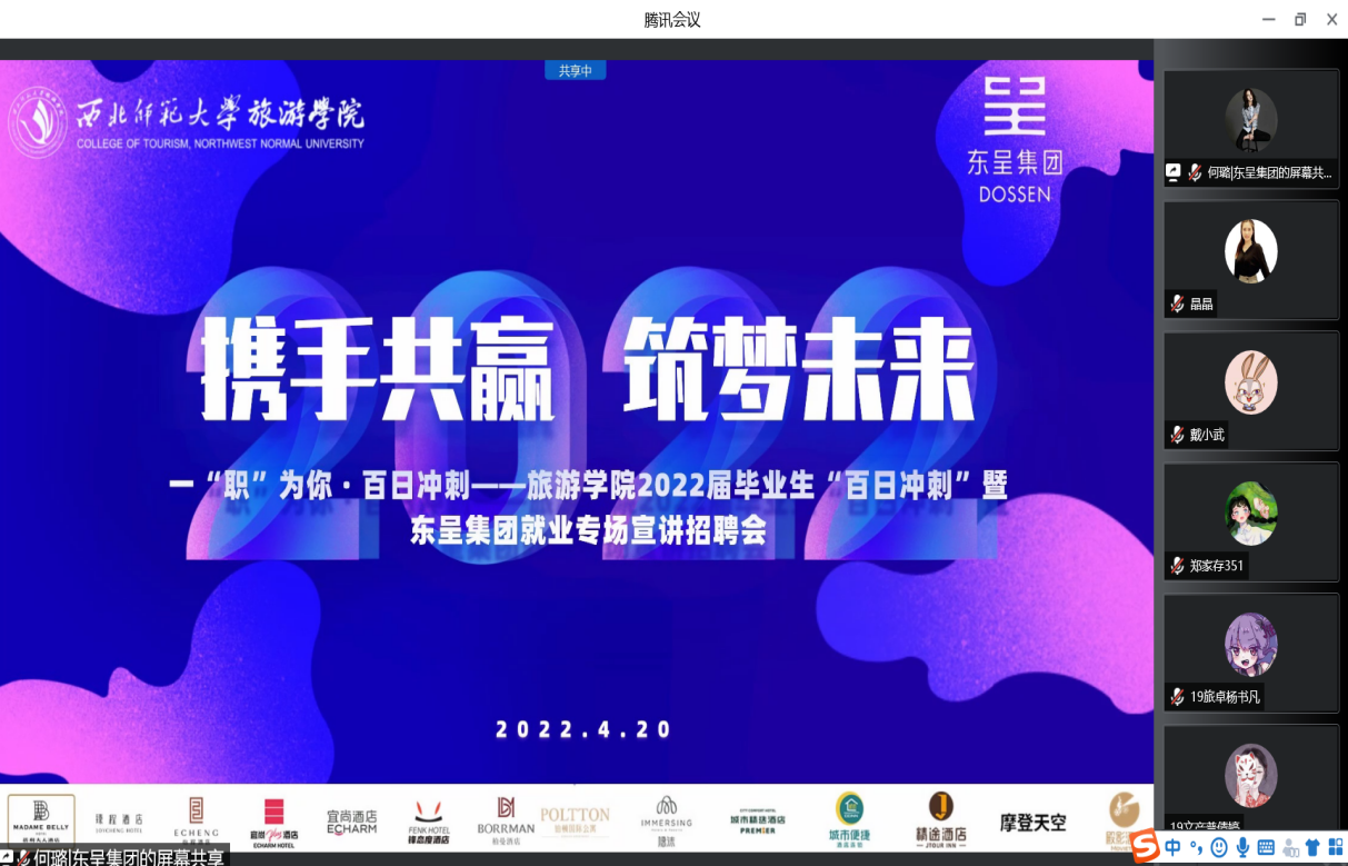 4月20日,beat365中文官网举办2022届毕业生“百日冲刺”暨东呈集团就业专场宣讲招聘会。学院党委书记谢致远、院长梁旺兵,东呈集团政委朱星红及相关负责人,beat365中文官网专职辅导员、毕业班班主任和2022届、2023届部分毕业生以线上线下的方式参加会议。会议由beat365中文官网党委副书记戴小武和东呈集团西北大区人力负责人朱晶晶共同主持。