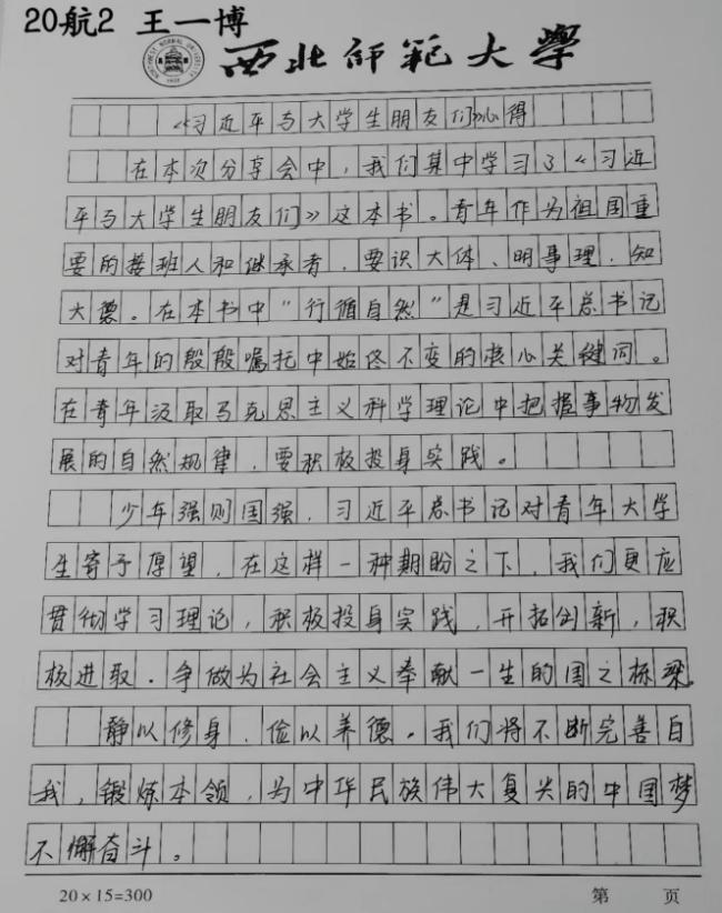 “自信人生二百年,会当水击三千里。”中国的未来属于青年,中华民族的未来也属于青年。实现中华民族伟大复兴的中国梦,需要一代又一代有志青年接续奋斗。长期以来,习近平总书记高度重视青年成长、始终关心青年发展、亲身指导青年工作。作为青年一代大学生更要认真贯彻学习习近平总书记对青年大学生的寄语期望,担当起党和人民赋予的历史重任,在实现中国梦的生动实践中放飞青春梦想,在为人民利益的不懈奋斗中书写人生华章!