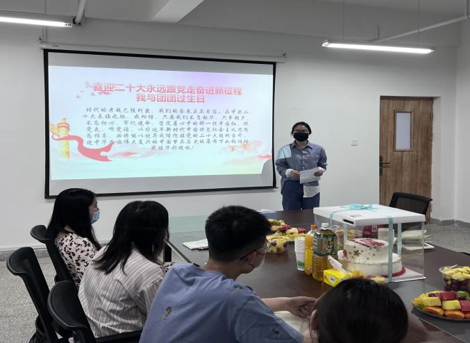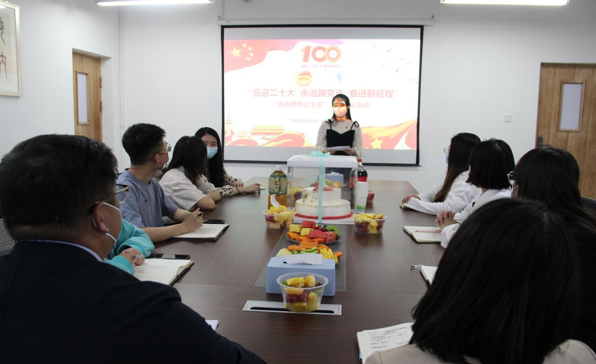 2022年,是党的二十大召开之年,又恰逢建团100周年,在“五四”青年节即将到来之际,为引导广大青年团员深入学习百年团史,厚植爱国爱党情怀,增强使命感与责任感,以实际行动迎接党的二十大胜利召开。4月28日,beat365中文官网团委开展了“喜迎二十大,永远跟党走,奋进新征程——我和团团过生日”主题团日活动,学院团委书记梅天鹏为参会团员讲授《永远跟党走——党领导下中国青年运动的百年历程》专题团课,为大家讲述了党领导下中国青年运动的百年(1922-2022)光辉历程、关于青年工作的重要思想引领新时代中国青年运动书写崭新篇章、百年中国青年运动历程的启示等内容。学院专职辅导员鲁梦鸽、苗馨月、基层团支部书记、2022年新发展团员参加活动。
