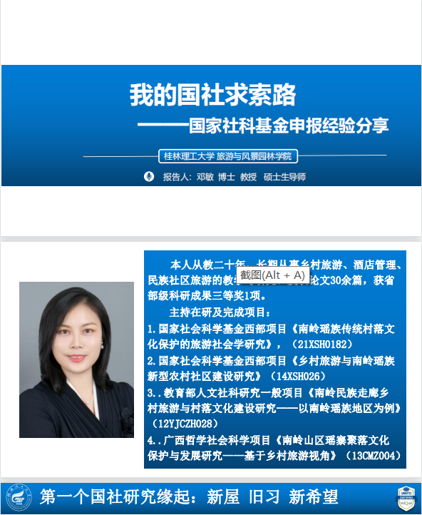 桂林理工大学旅游与风景园林学院博士、教授、硕士生导师邓敏受邀为学院师生作报告