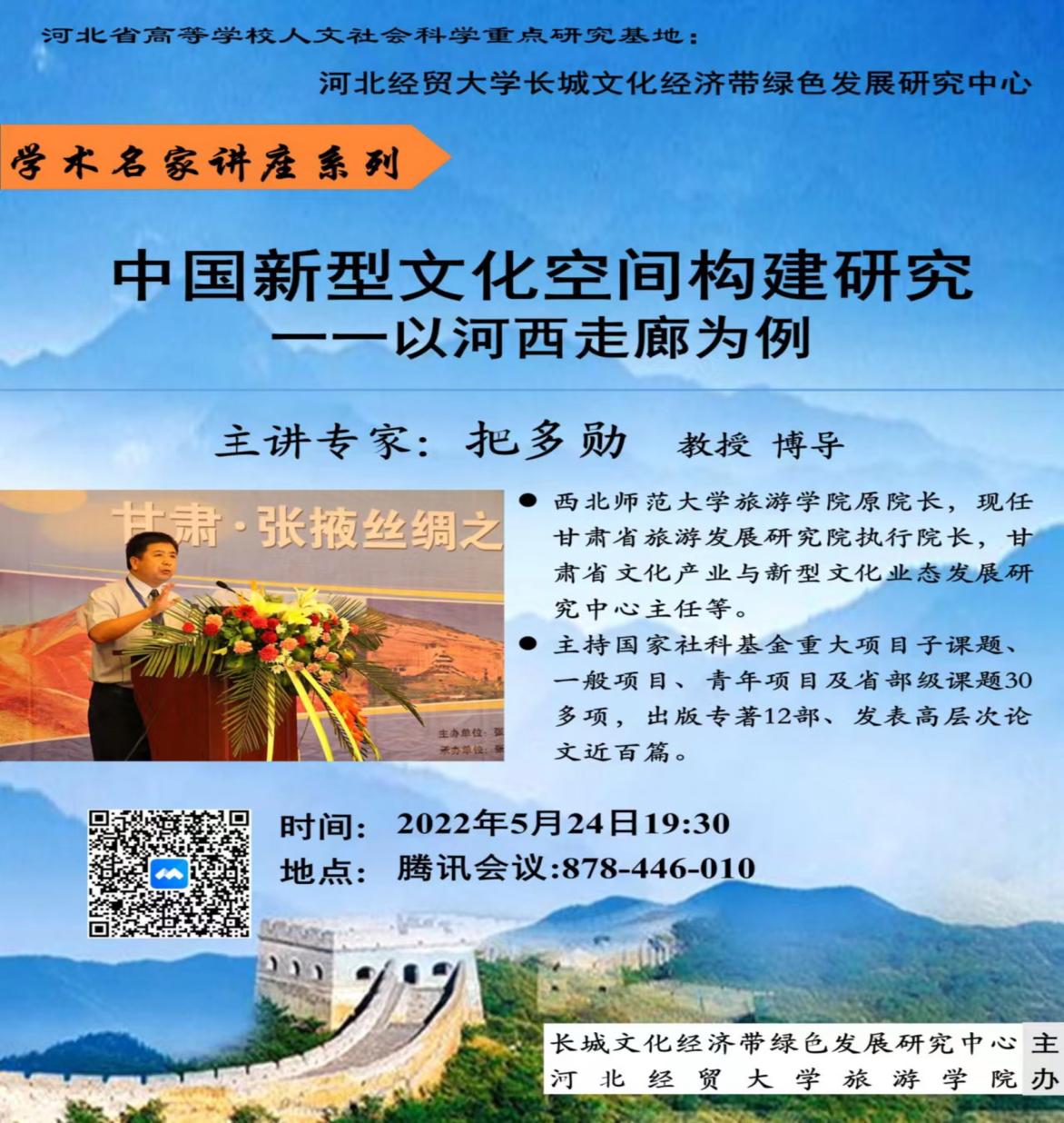 近日,河北经贸大学承担的河北省人文社科重点研究基地“河北省长城文化经济带绿色发展研究中心”正式成立,beat365官网把多勋教授被聘为中心专家组成员,并为河北经贸大学beat365中文官网做了“中国新型文化空间构建研究”的学术报告。