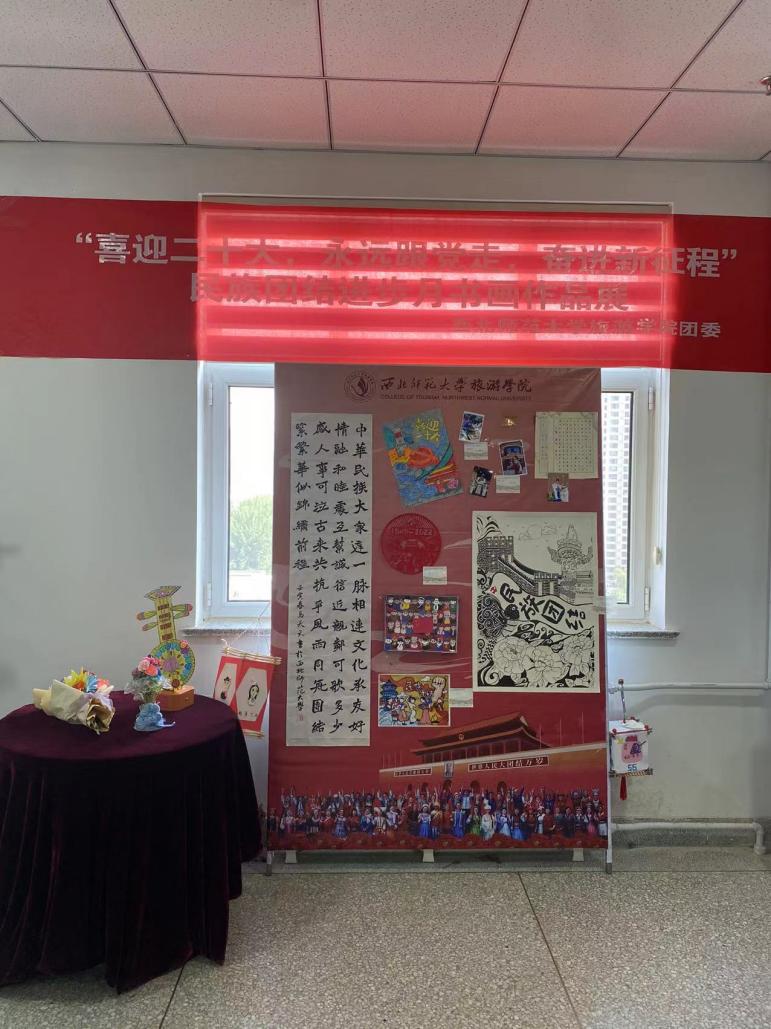 5月8日,beat365中文官网团委积极动员2019级、2020级、2021级本科生参加“喜迎二十大,永远跟党走,奋进新征程”民族团结进步月书画作品展,各班同学积极踊跃参加,充分发挥自身特长,将民族团结以精美的绘画、独特的摄影、隽逸的书法、巧妙的手工作品等方式进行呈现并在文科实训楼10楼进行为期一个月的展览。