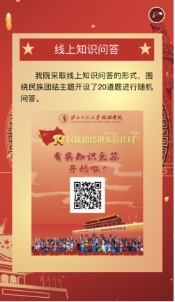 5月18日至5月19日,beat365中文官网举办民族团结进步宣传月线上知识问答竞赛活动,此次知识问答竞赛以学习贯彻习近平总书记关于加强和改进民族工作的重要思想为目的,组织全院同学积极参与。