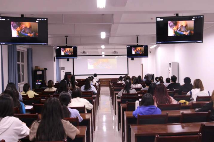 5月12日,beat365中文官网在文科实训楼904举办民族团结进步宣传月观影活动。本次观影活动邀请各班同学参与,播放民族团结进步教育主题电影《红色土司》,该电影是第一部正面反映红四方面军长征途经阿坝藏区、羌区的红色电影,也是我国首部羌族革命英雄题材电影,向大家展现了广大羌族人民的爱国情怀,弘扬了民族团结进步精神。