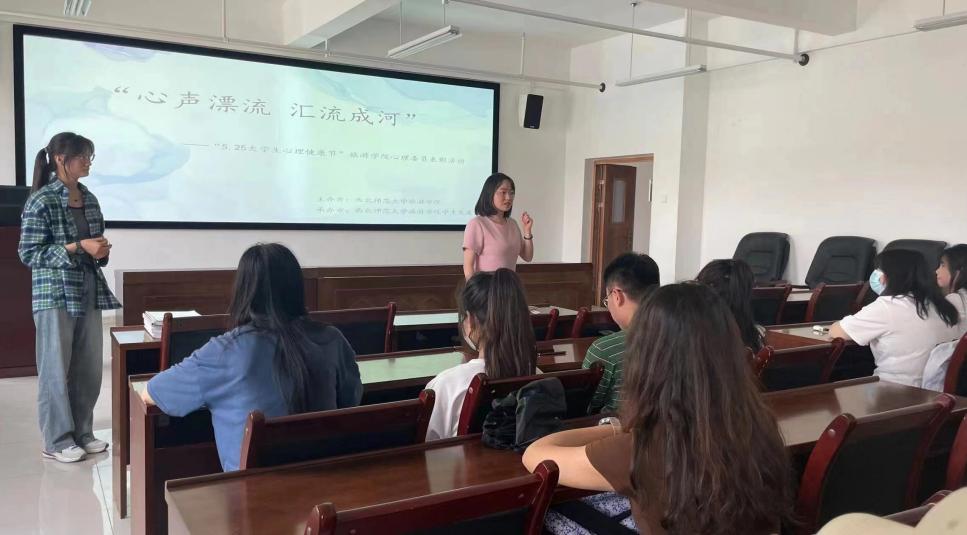 5月31日中午,beat365官网在文科实训楼904开展“心声漂流 汇流成河”心理委员分享交流会。活动伊始,主持人首先通过播放视频、PPT等形式向大家普及心理健康基础知识以及心理健康的重要性。随后,beat365官网专职辅导员鲁梦鸽老师与大家交流心理健康工作的重要性与心理健康工作的技巧方法,让大家重视心理健康,关注心理疾病患者,号召大家关爱自我心理健康的同时,积极帮助需要帮助的同学。