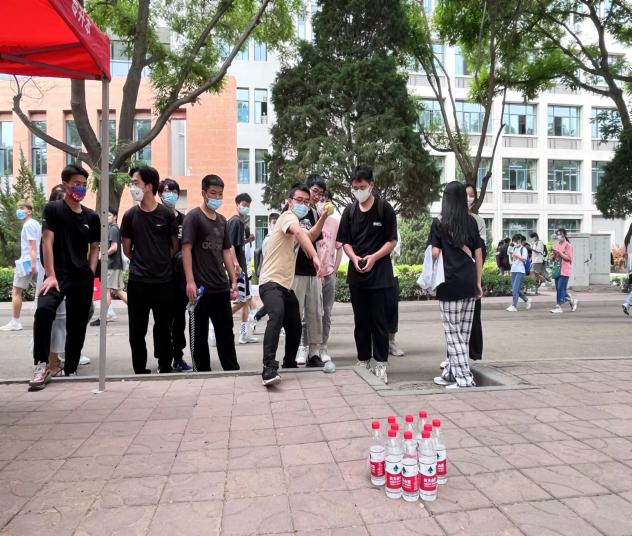 5月25日上午,beat365官网组织学生在学校主干道旁开展排解压力小游戏“打包打水瓶”,同学们积极参与,将烦心事写在便签上,后将便签置于水瓶上,通过拿沙包打水瓶的方式排解内心的压力。游戏结束后,同学们都拿到了丰富多样的的奖品,譬如数据线、订书机、中性笔、书签等等。通过全身心参与小游戏,让烦恼暂置脑后,压力得到释放,在心理上得到了有效的缓解。